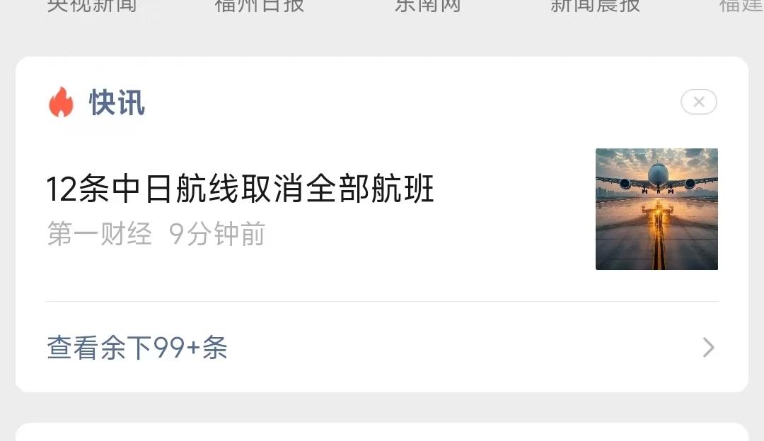 东南网11月24日讯(本网记者 陈楠)今日,《12条中日航线取消全部航班》的消息冲上热搜,据财联社11月24日电,航班管家DAST数据,截至11月24日10点,已有12条中日航线取消所有航班。监测数据显示,未来一周赴日计划航班取消率将在11月27日达到21.6%,为1个月以来最高值。取消率靠前的航线有天津滨海-关西国际(65.0%)、南京禄口-关西国际(59.4%)、广州白云-关西国际(31.3%)、上海浦东-关西国际(30.1%)。