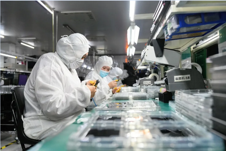 在位于廊坊开发区的冀雅(廊坊)电子股份有限公司生产车间,工作人员对产品外观进行检验。